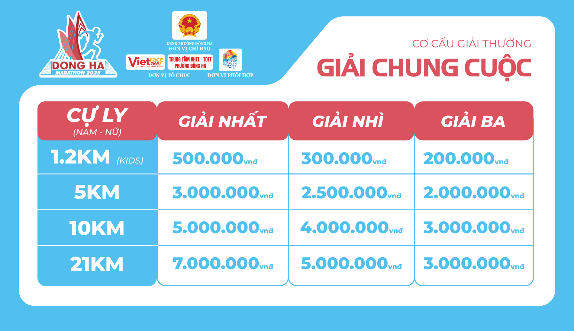 Thiết thực chào mừng Đại hội đảng bộ các cấp tiến tới Đại hội đại biểu toàn quốc lần thứ XIV của Đảng, thông qua đó quảng bá du lịch, mảnh đất và con người Đông Hà đến bạn bè trên khắp mọi miền đất nước. ĐÔNG HÀ MARATHON 2025 dưới sự chỉ đạo của UBND Phường Đông Hà phối hợp với Công ty Cổ phần Vietarce365, Trung tâm VHTT-TDTT phường Đông Hà và các cơ quan, đơn vị liên quan phường, các khu phố trên địa bàn, CLB Quảng Trị Runners tổ chức với các cự ly KIDS 1.2KM, 5KM, 10KM và 21KM chào đón các Runner khắp mọi miền tham gia và trải nghiệm.