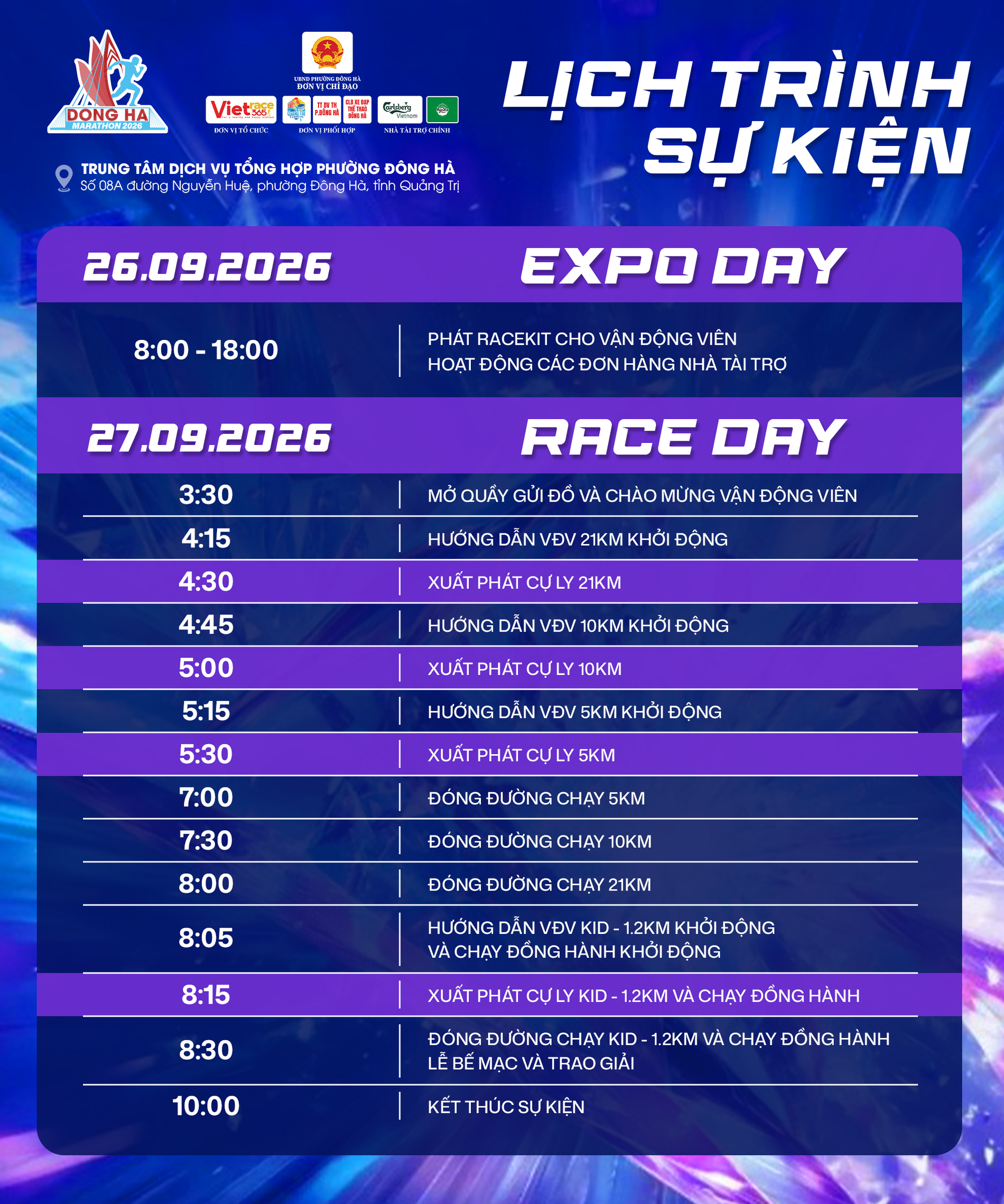 Đông Hà Marathon 2026 không đơn thuần là một cuộc đua – đó là hành trình khám phá, là nơi hội tụ của đam mê, ý chí và tình yêu dành cho vùng đất Quảng Trị kiên cường. Hẹn gặp bạn tại vạch xuất phát, nơi bình minh bắt đầu và những giới hạn được vượt qua.