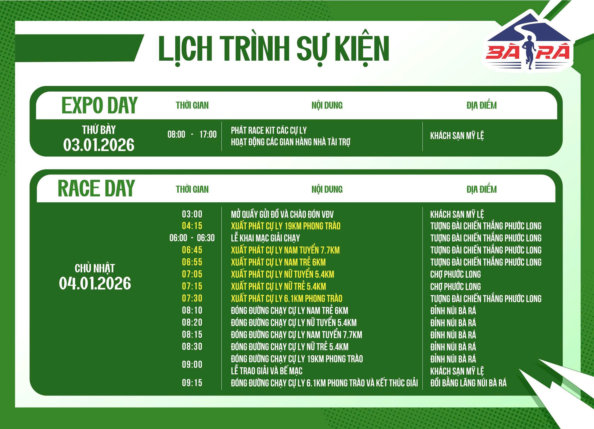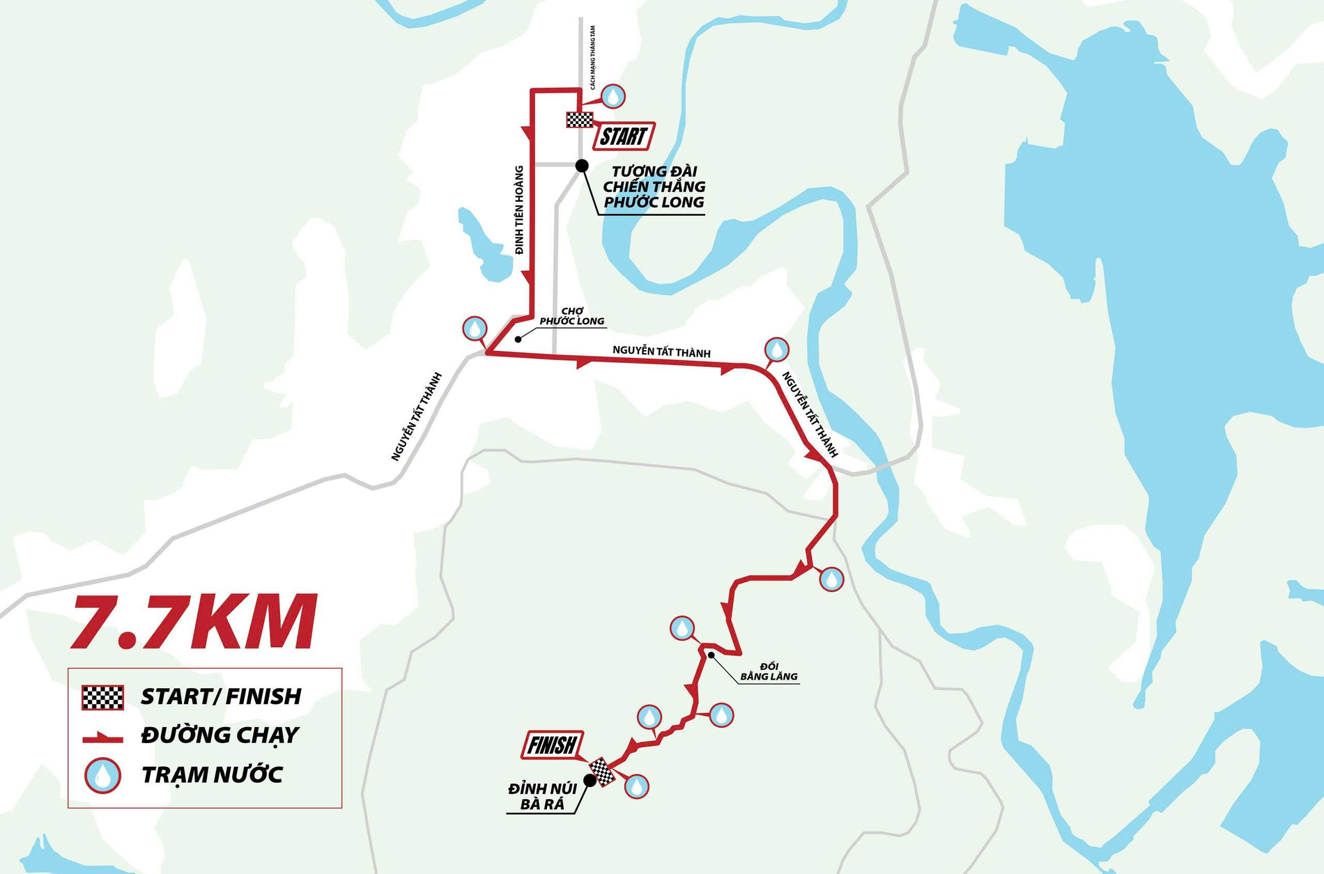 Điểm về đích: Núi Bà Rá, phường Phước Long, tỉnh Đồng Nai.