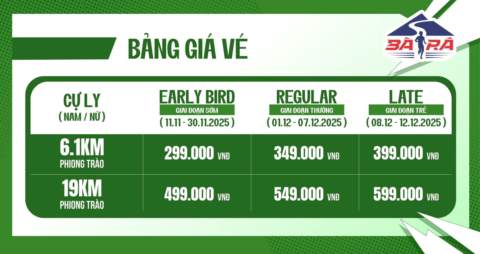 Trong trường hợp muốn thay đổi BIB cự ly, vận động viên cần thực hiện trước ngày đóng cổng đăng ký (12/12/2025). Phí thay đổi 200.000đ/lần thay đổi. Về thay đổi cự ly vận động viên thanh toán phí chênh lệch theo giá trị của các cự ly, với việc đổi sang cự ly có giá trị nhỏ hơn sẽ không hoàn phí chênh lệch.
